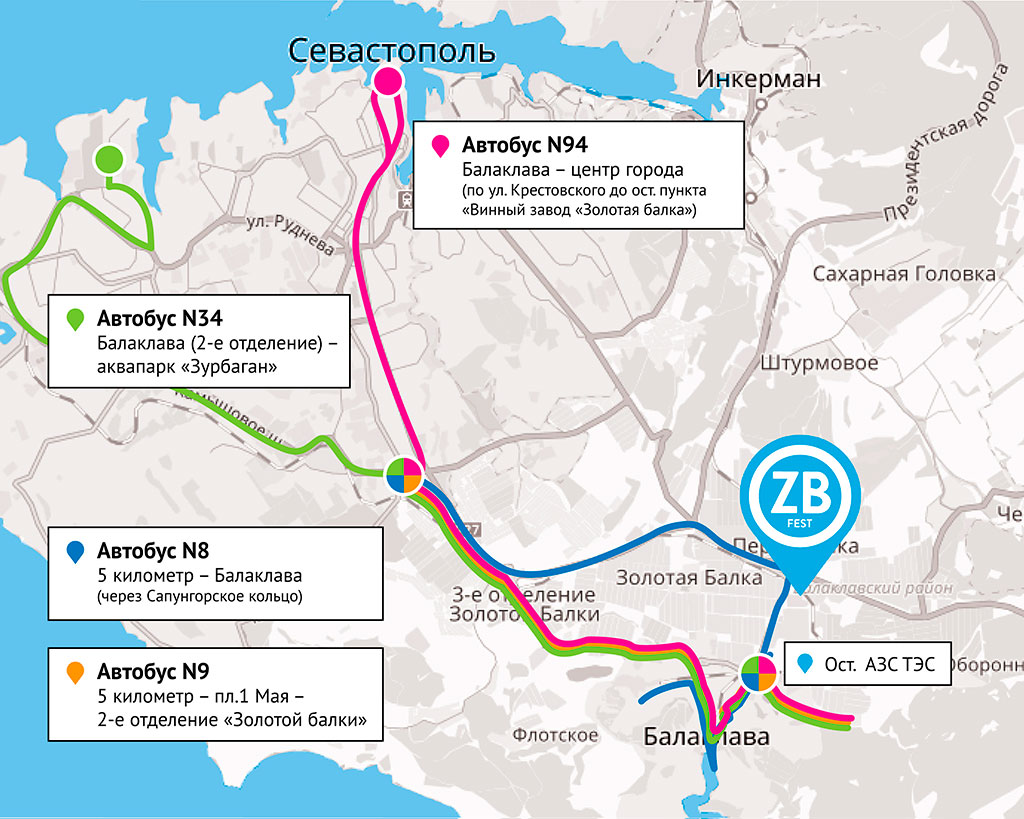 - № 94 «Балаклава – центр города» по ул. Крестовского до ост. пункта «Винный завод «Золотая балка».
